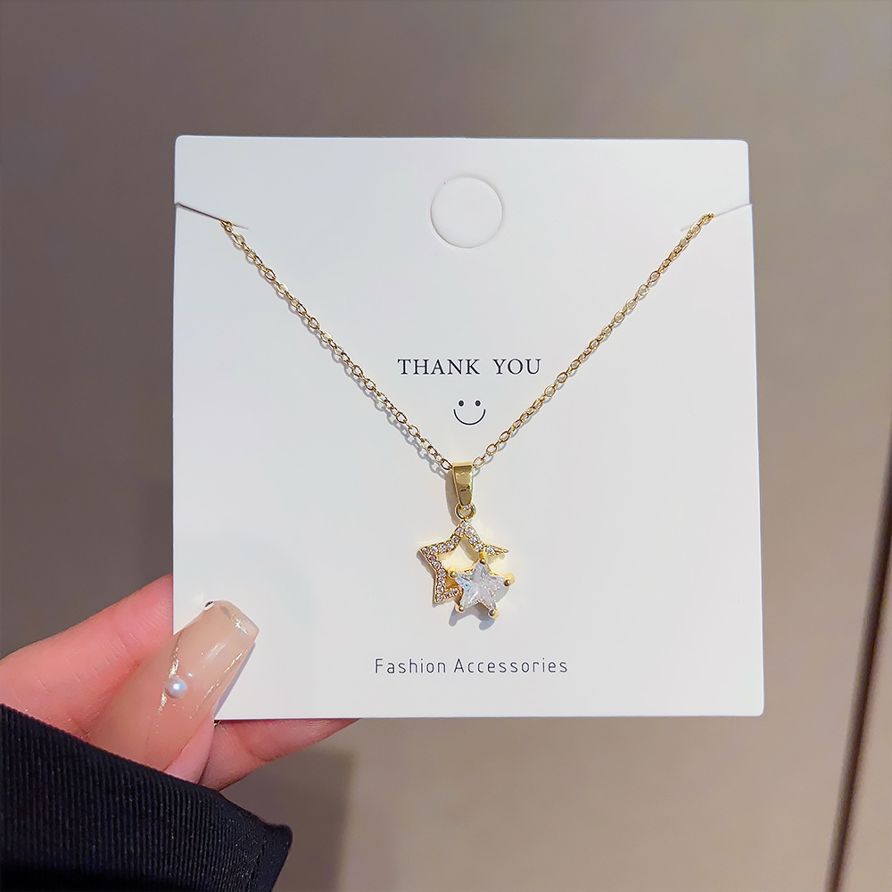 Product information: Processing Technique: Gold Inlay Color: X012 Titanium Steel Necklace Target Audience: Women Pendant Material: Copper Micro-Inlaid Chain Style: Cross Chain Material: Titanium Steel Design: Star Shape Trendy Element: Five-Pointed Star Style: Instagram Style Length: 21cm (inclusive) – 50cm (inclusive)